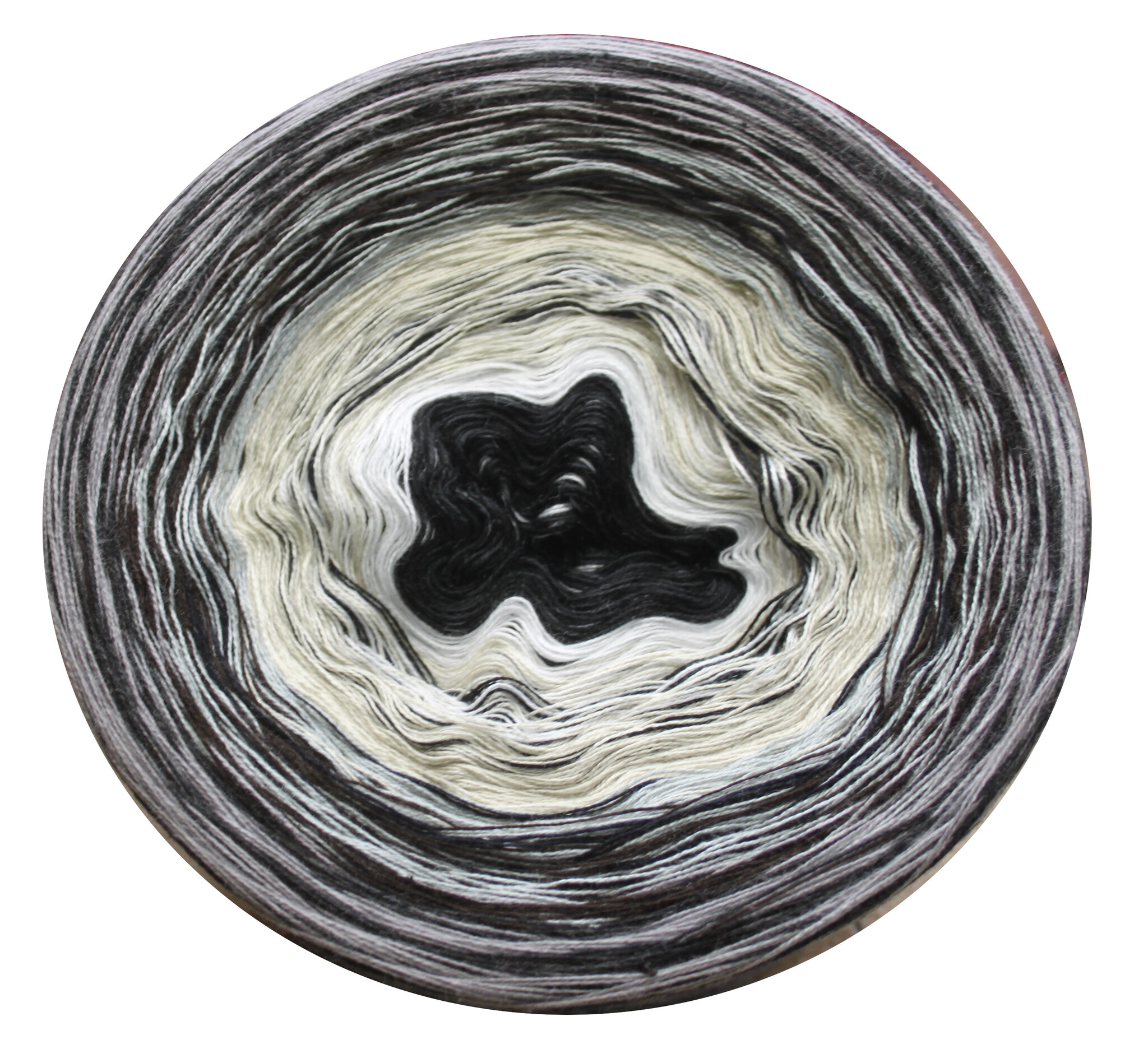 Diese Bobbel bringen von Natur aus eine starke Musterung mit sich und sind eher für einfache (musterlose Arbeiten geeignet) wie zum Beispiel Pullover, glatt rechts oder grosse Lochmuster etc.